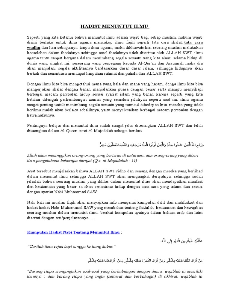 Hadits Menuntut Ilmu Wajib Bagi Muslim Nusagates