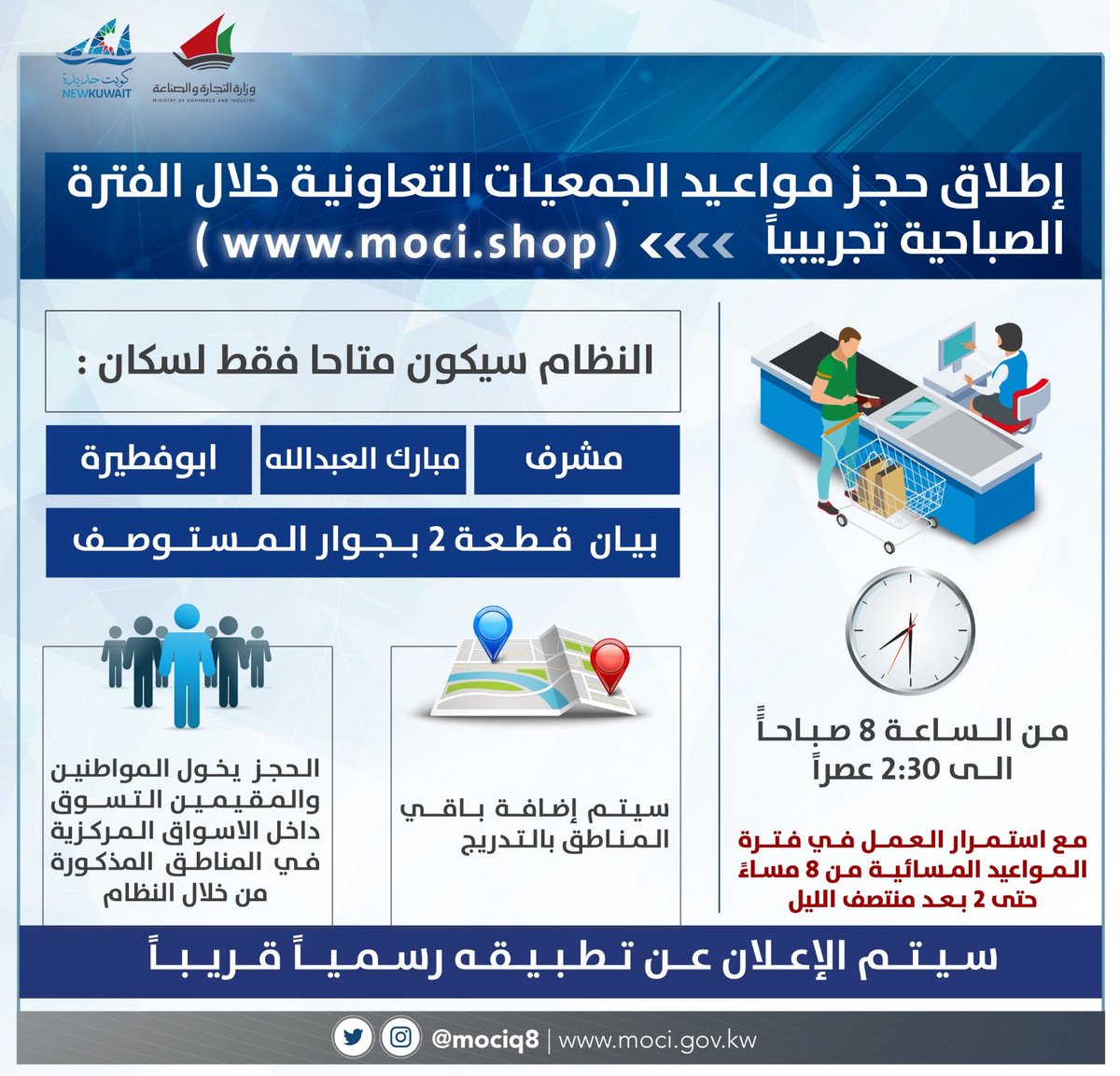 صحيفة النافذة الاخبارية إطلاق حجز مواعيد الجمعيات التعاونية خلال الفترة الصباحية تجريبيا في 4 جمعيات محشومين أهل فيلكا ببجي الجهراء