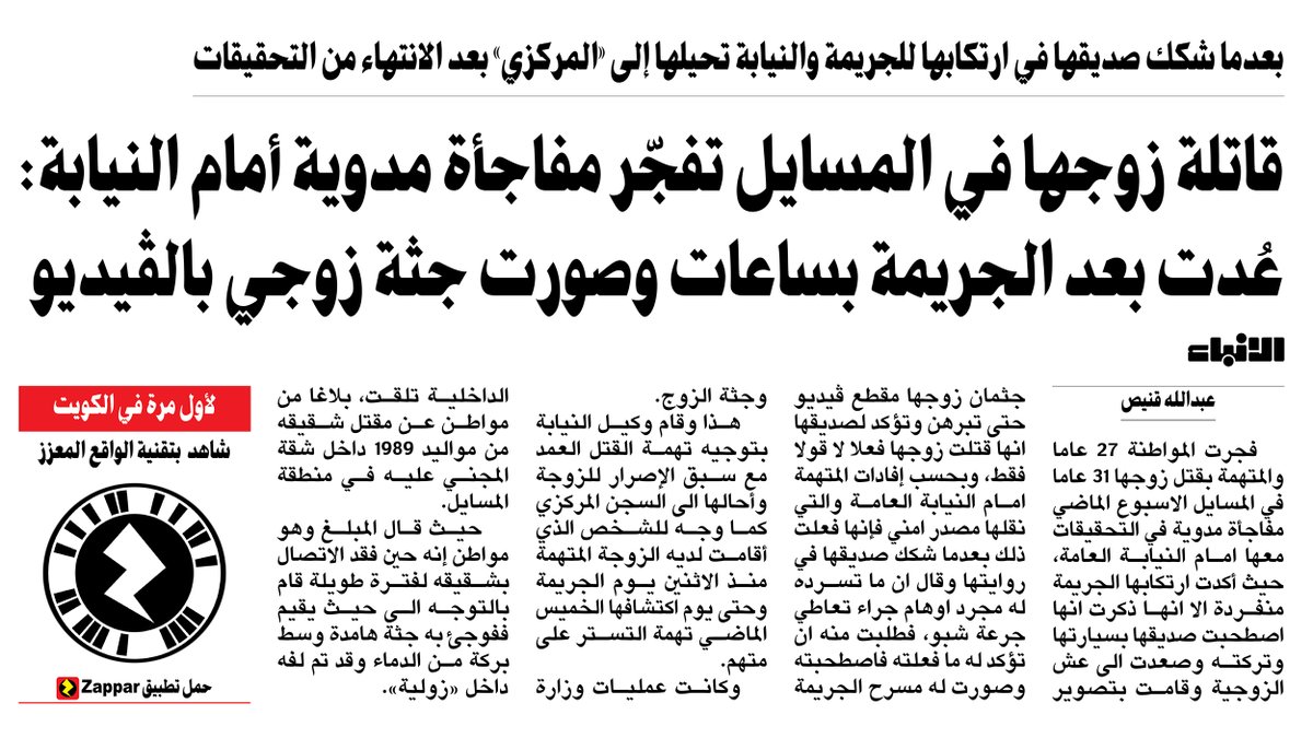 صحيفة الأنباء قاتلة زوجها في المسايل تفج ر مفاجأة مدوية أمام