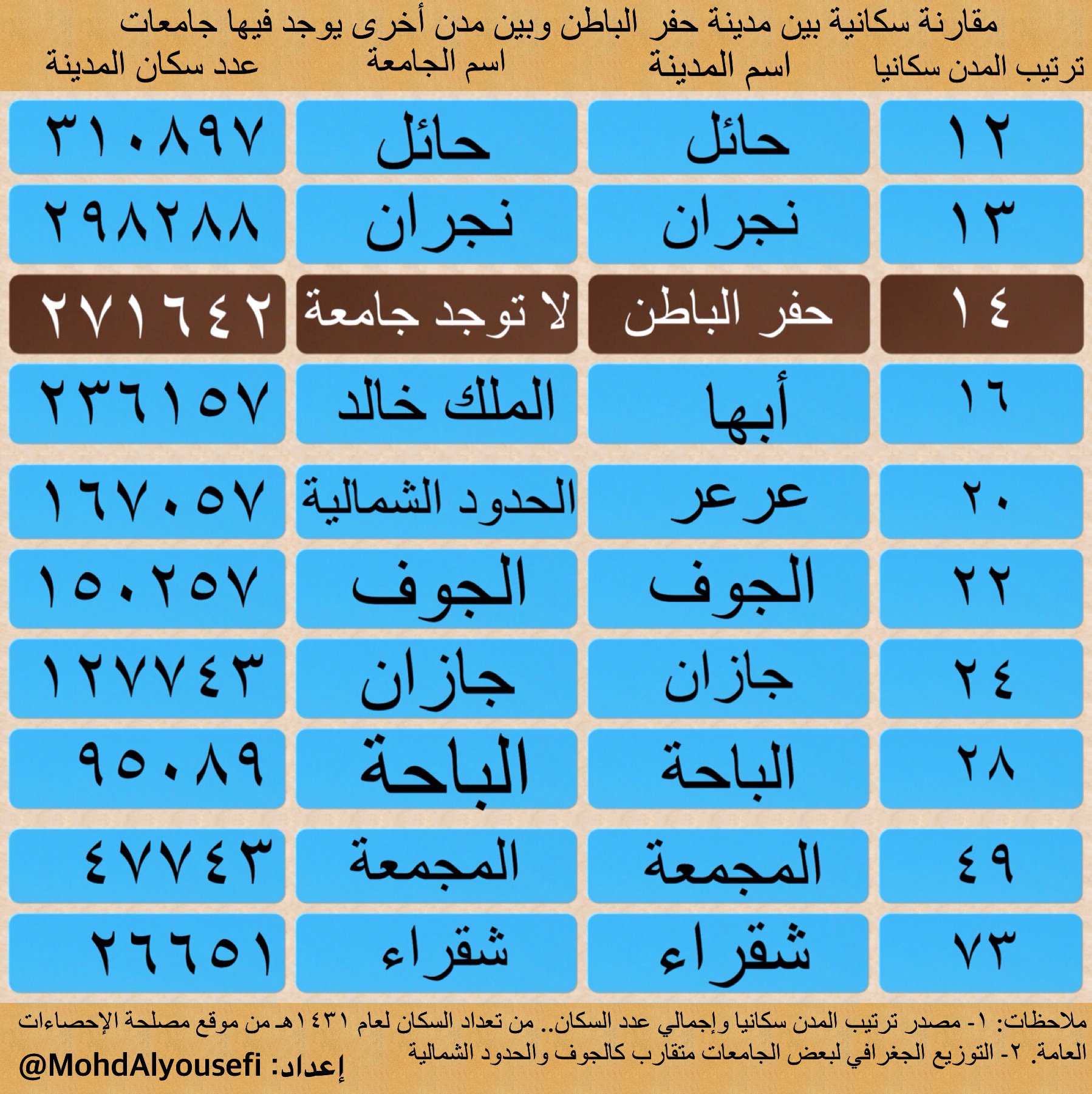 محمد اليوسفي On Twitter حفر الباطن سكانيا أكثر من ٧مدن سعودية